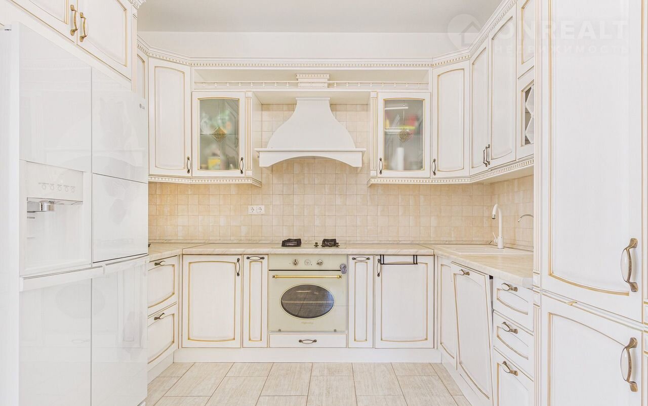 - Большая и комфортная кухня со всеми необходимыми бытовыми приборами и техникой, которая придется по вкусу умелой хозяйке или повару + светлая и уютная обеденная зона для всей семьи.