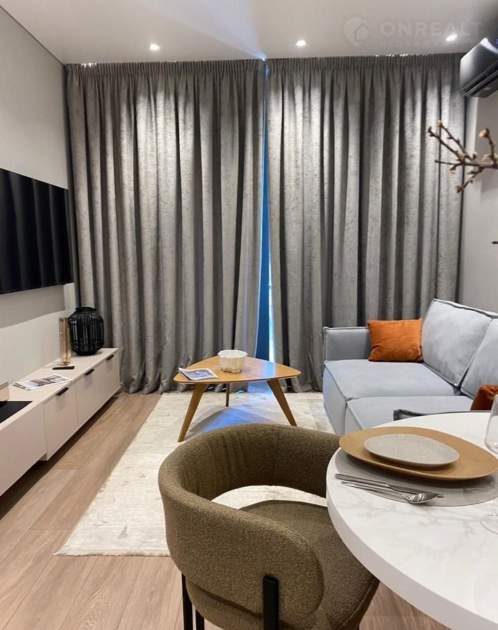 С мебелью и техникой.