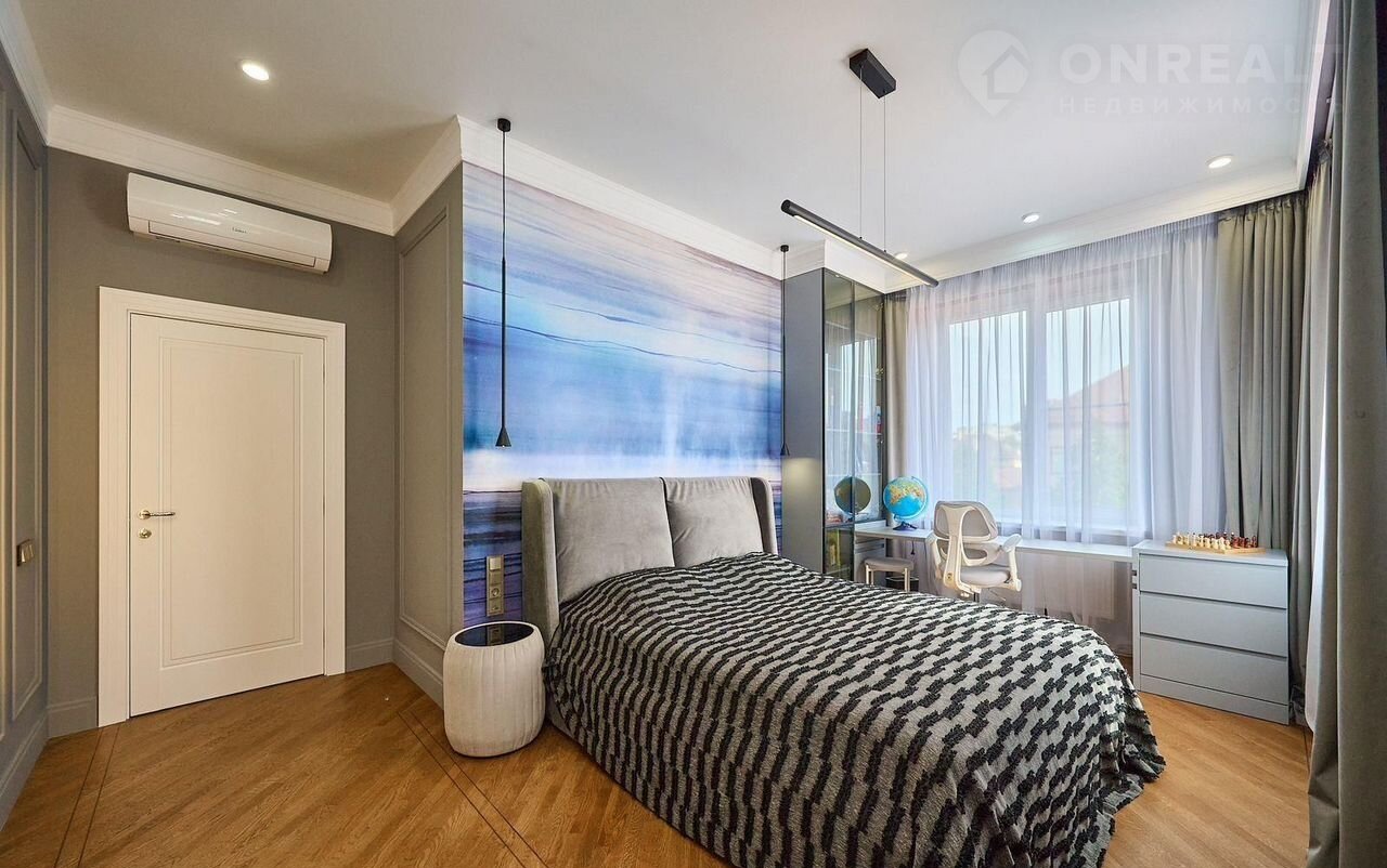 На втором этаже мастер спальня 39 кв, детская для девочки 25 кв, детская для мальчика 30 кв, игровая комната для детей 24 кв, сан узел детский 22 кв, В доме 3 комнат, две огромные гостевые, кухня, котельные, постирочные, гардеробы и многое другое. Отдельное внимание хотелось бы уделить тому, что вид из каждого окна доставляет неиссякаемое наслаждение.