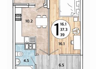 Общая площадь: 37.3 м2