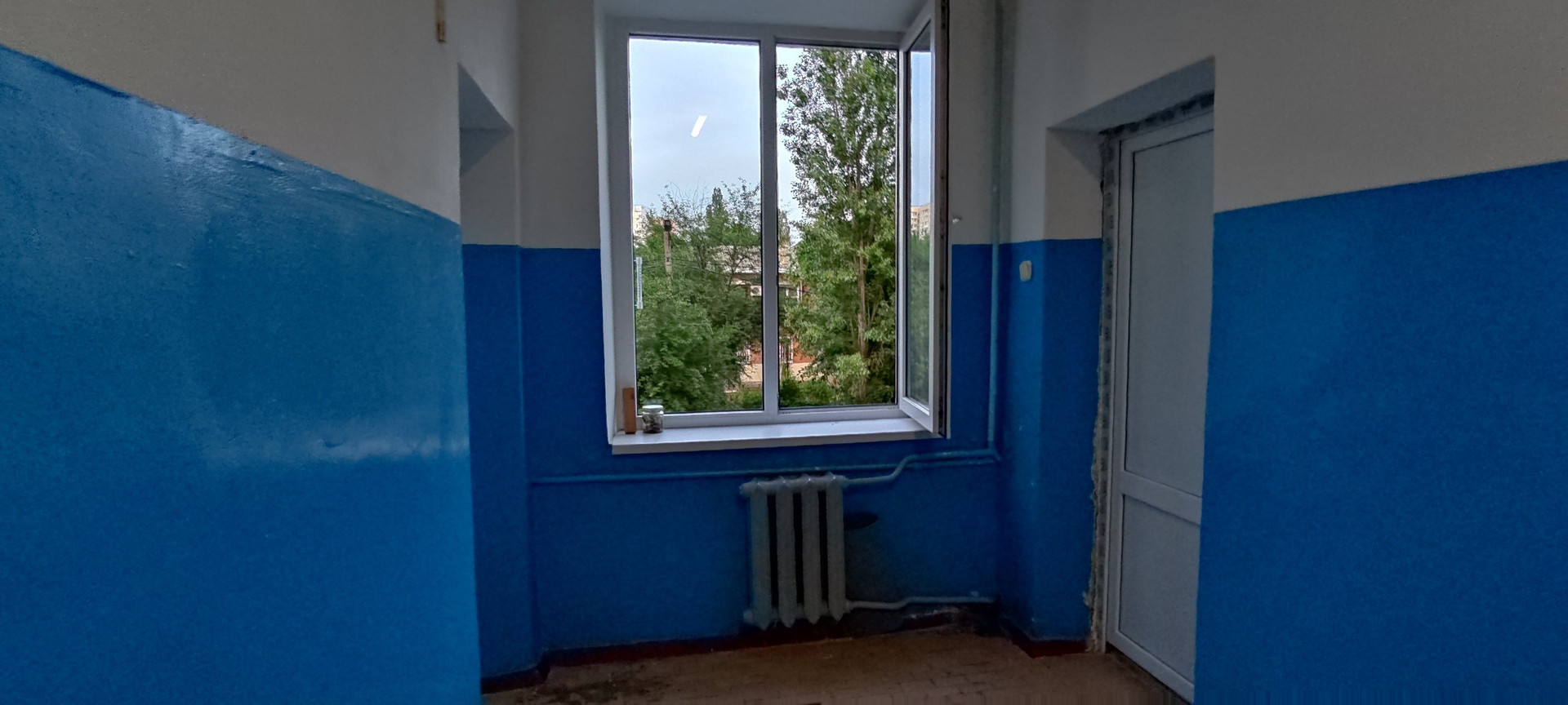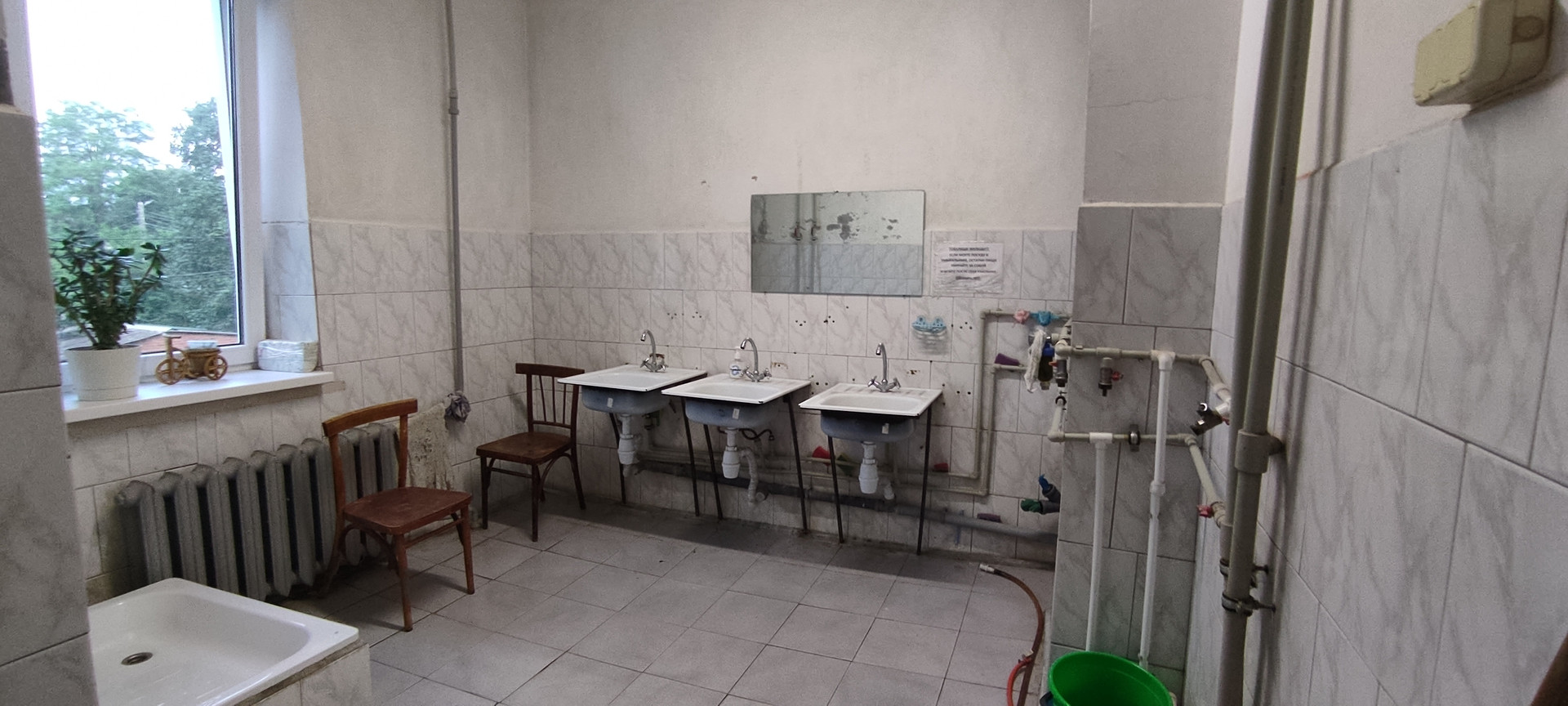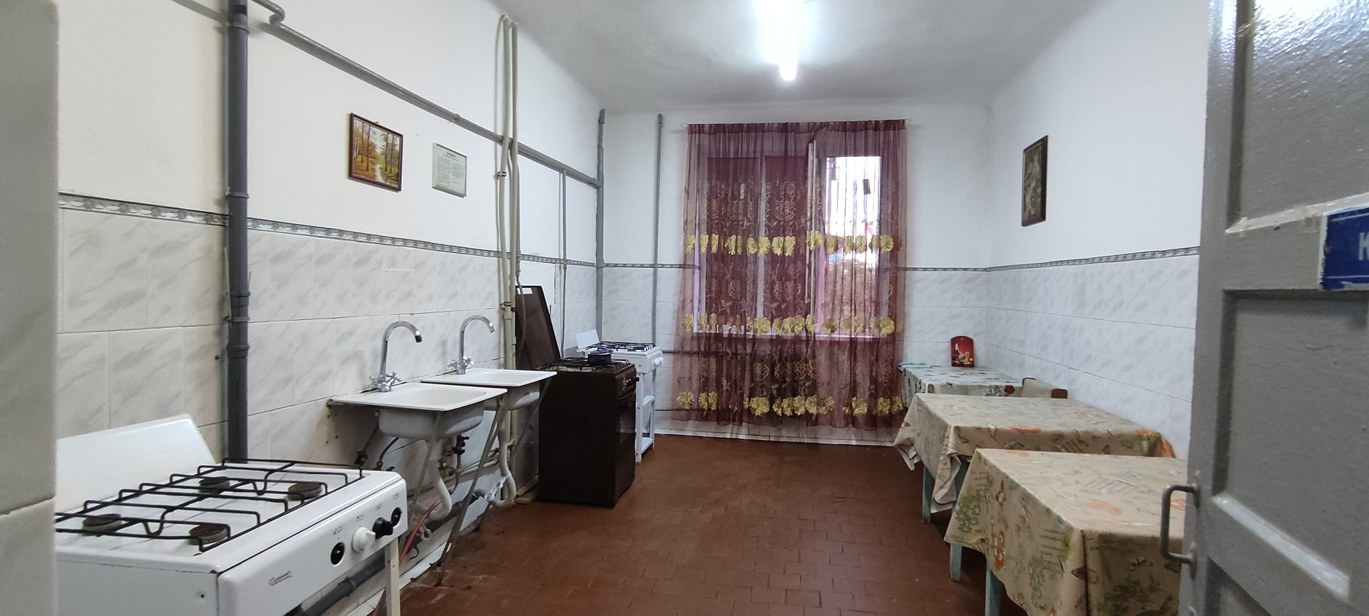 Большая чистая кухня с газовыми плитами,столами и большим окном — общие. Тоже новые МПО. Установлен график дежурств.