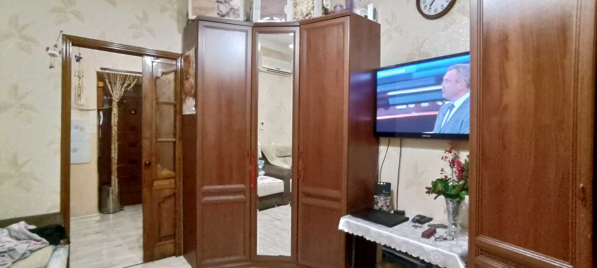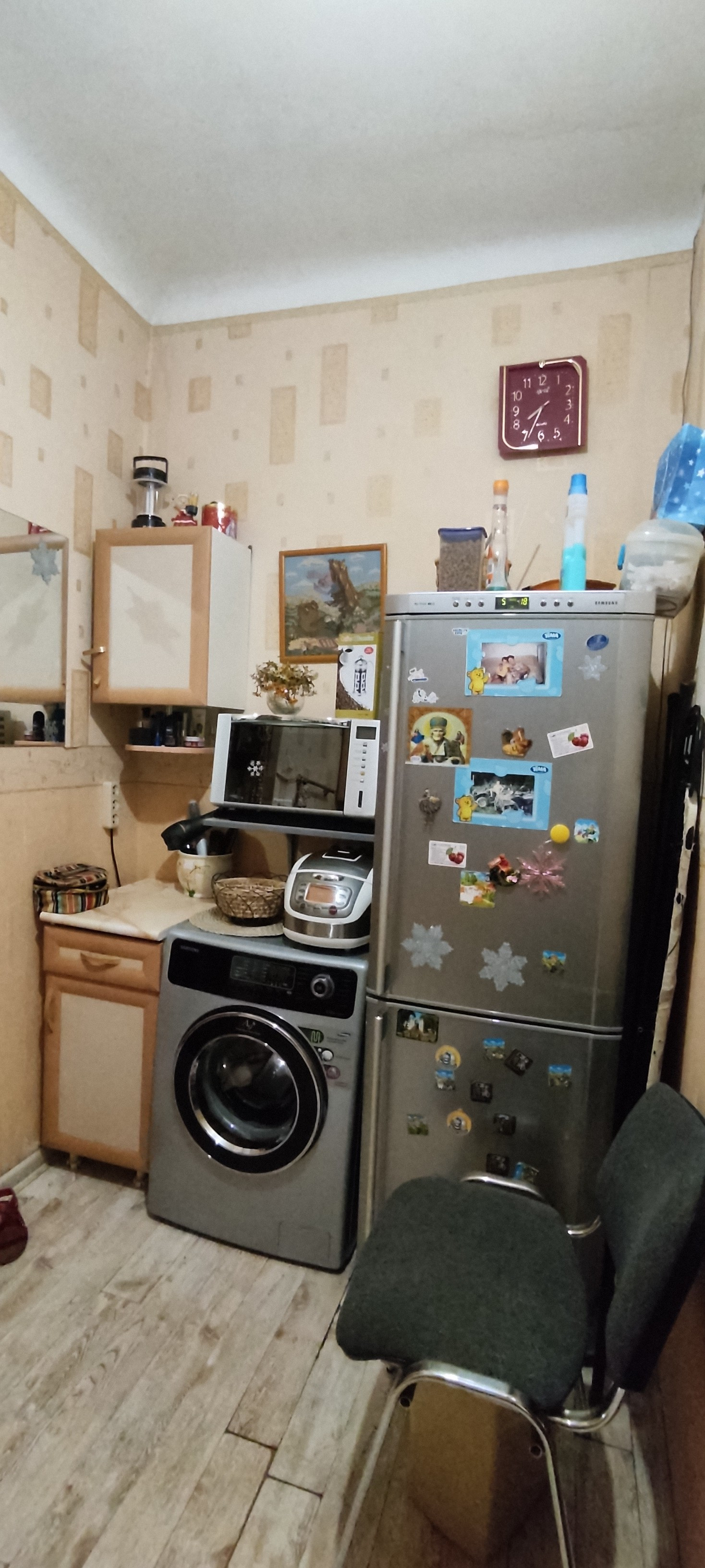 Ремонт- ламинат, обои, натяжной потолок, МПО, межкомнатная дверь и входная хорошего качества.