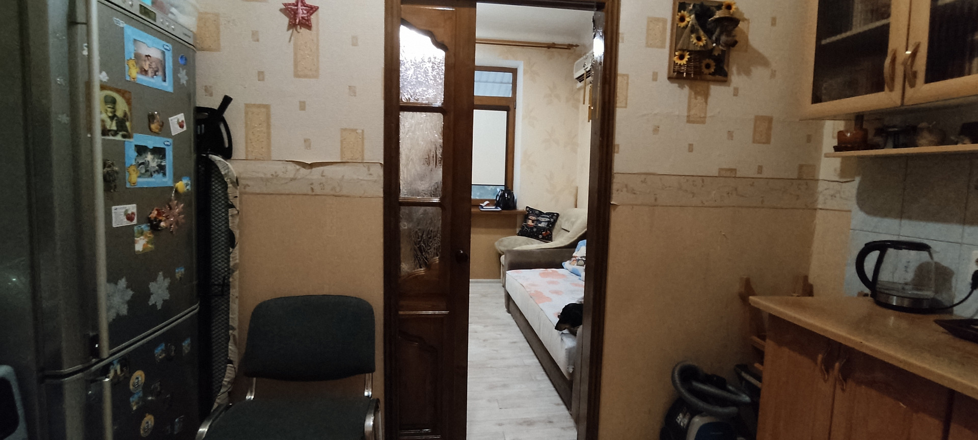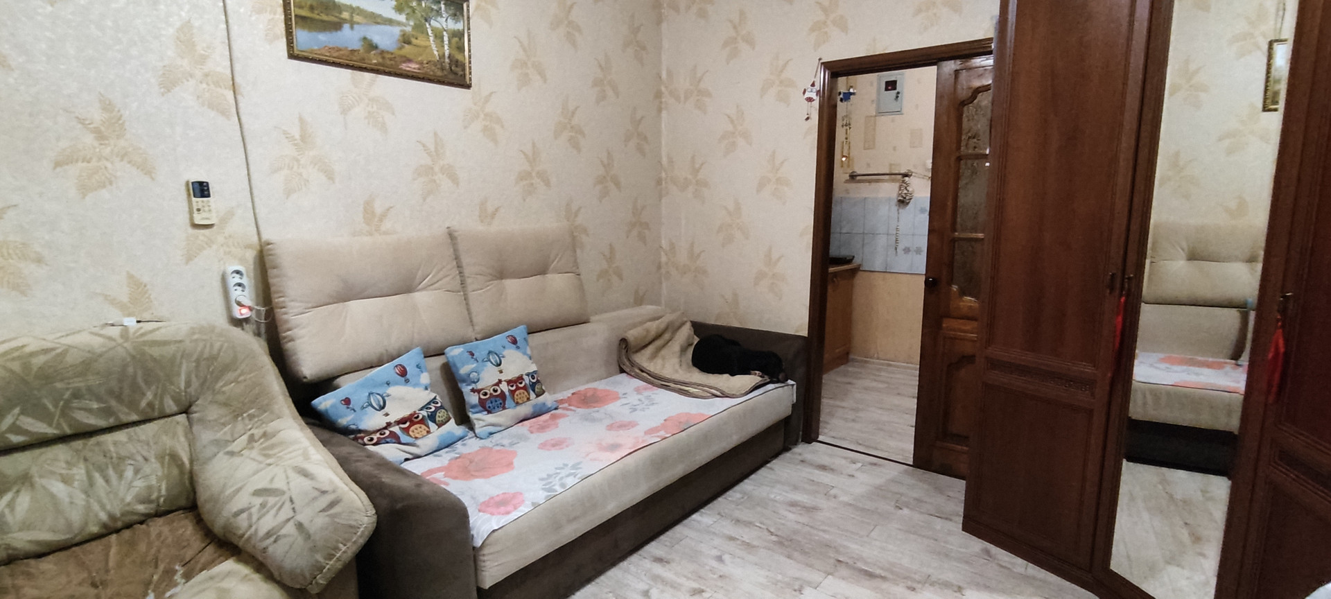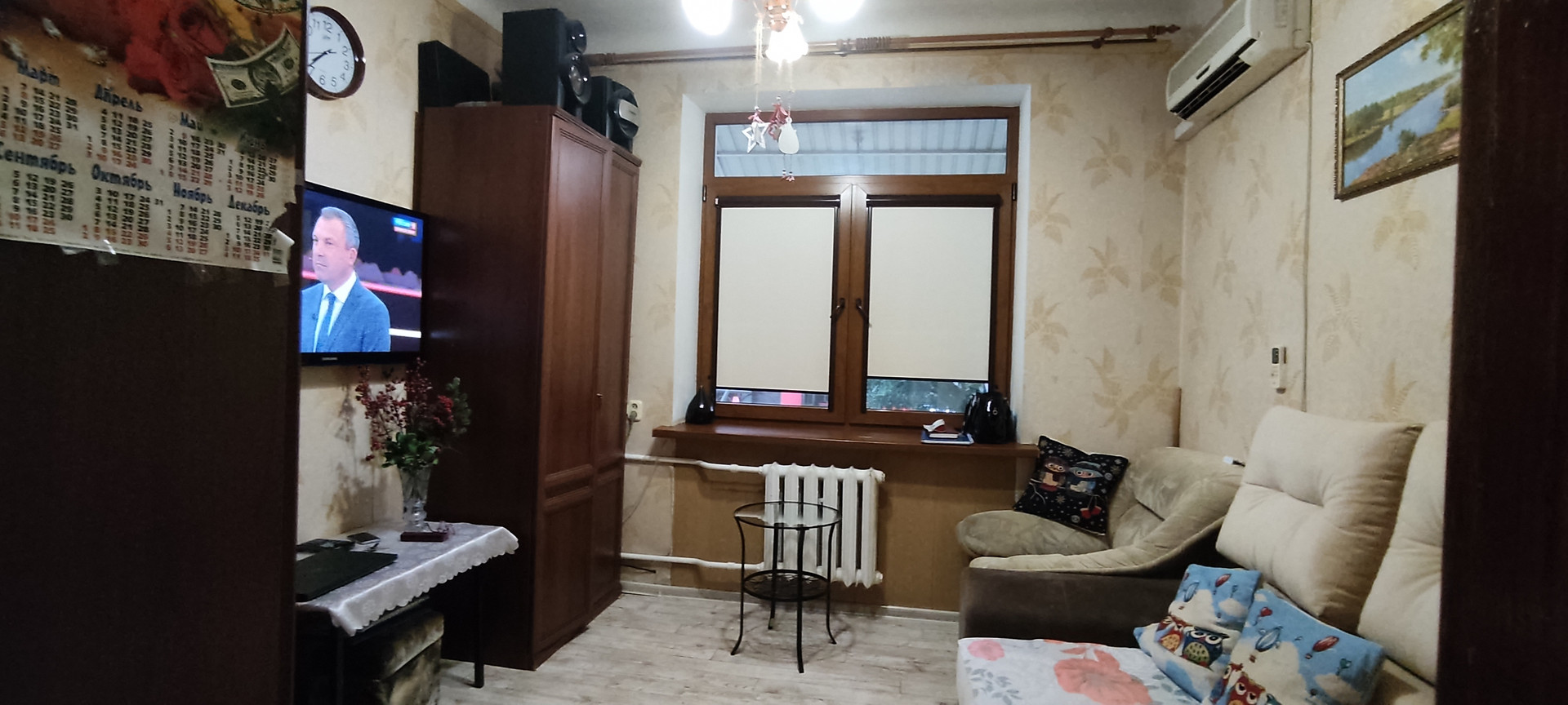 Состояние жилое. Установлена хорошая новая сплит-система,остается кухонная мебель и кресла.