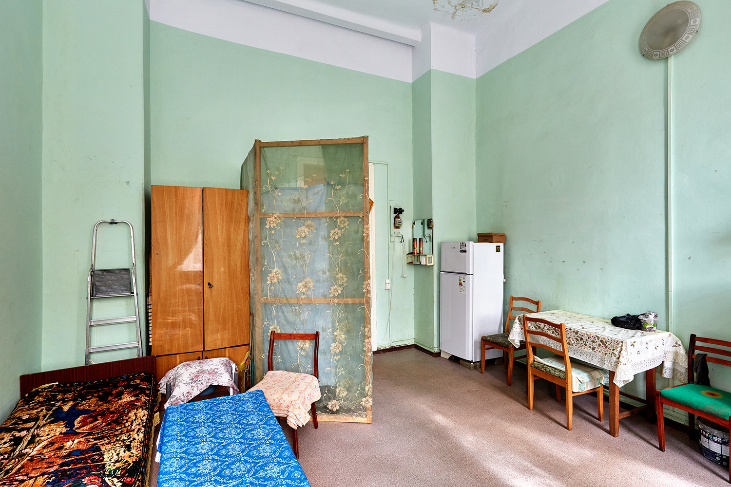 Комната расположена на втором этаже двухэтажного дома, коридорный тип, соседи рядом в трех комнатах проживают, общая кухня и общий санузел и душ.