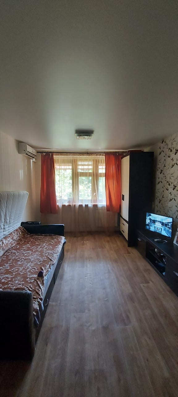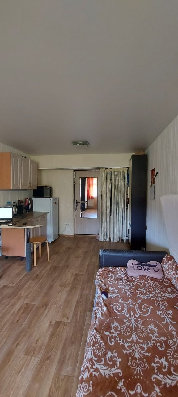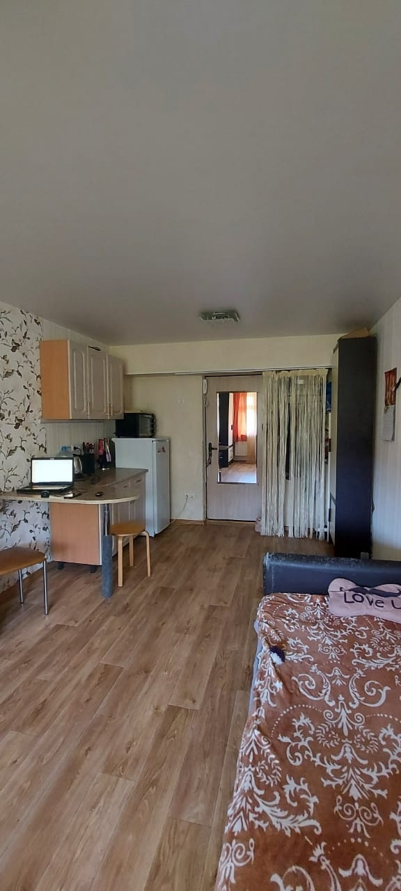 В комнате имеется небольшой кухонный гарнитур, диван, шкафы, тумба под телевизор, свой холодильник и микроволновая печь, Сплитсистема.