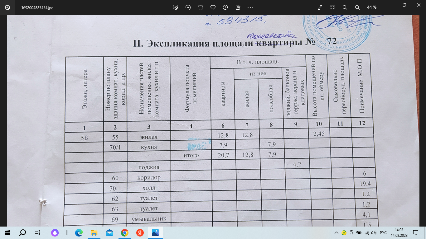 Общая площадь 20,7 м2. туда входит;