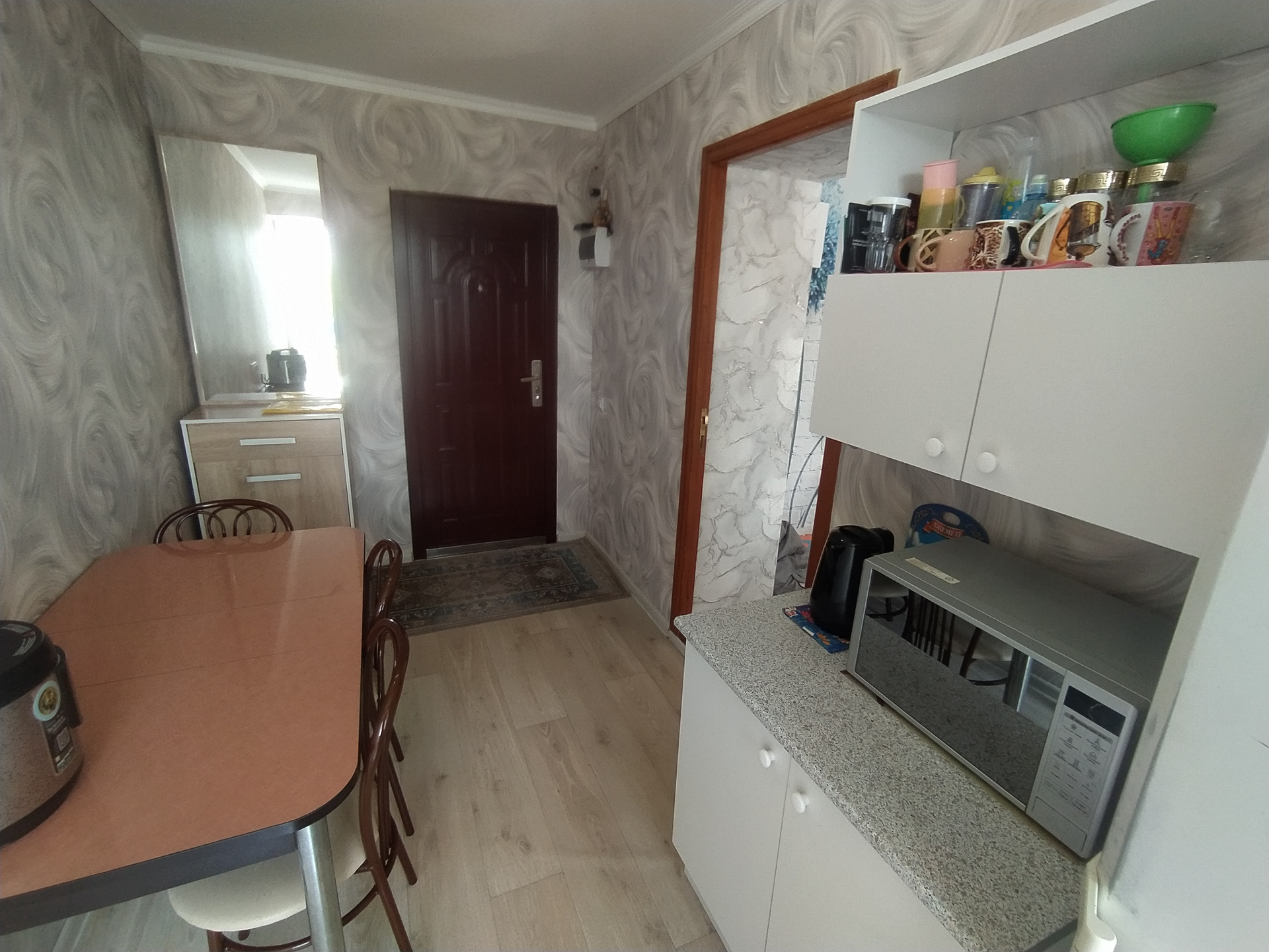 пристроенное помещение 7,9 м2, в ней расположена наша индивидуальная кухня.