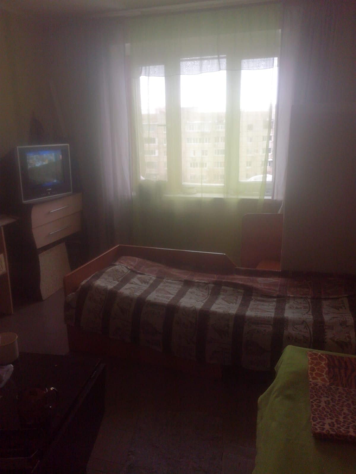 Комната светлая просторная. Остаётся сплит-система, и вся мебель, которую Вы видите на фотографиях. Готова для проживания.))