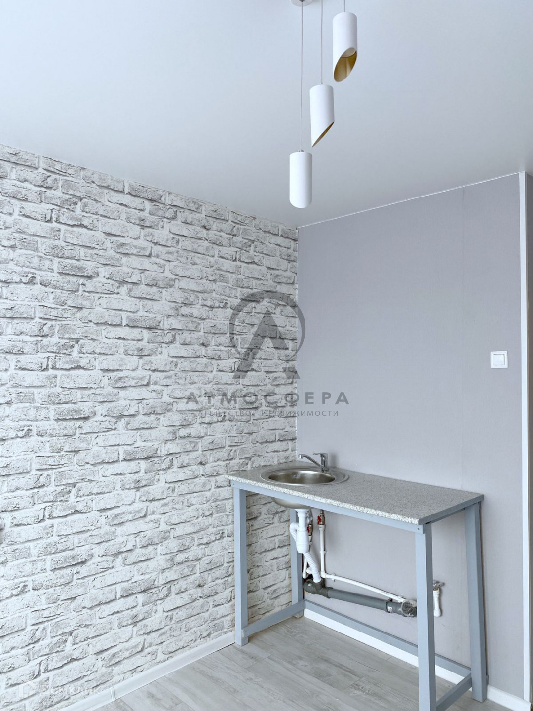 В комнату заведена вода, установлена мойка и столешница под рабочую зону кухни, выведены трубы под стиральную машину.  Комната правильной формы, что позволит Вам ее удобно зонировать. Раздельный санузел (душ, туалет) на две комнаты.