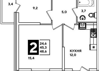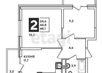 Продается 2-комнатная квартира, 48.1 м2, улица Героя Пешкова, 14к2