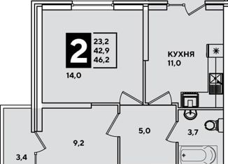 Продаю двухкомнатную квартиру, 46.2 м2, улица Героя Пешкова, 14к2