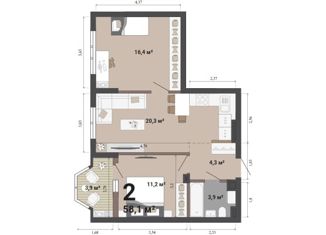 Общая площадь: 58.6 м2