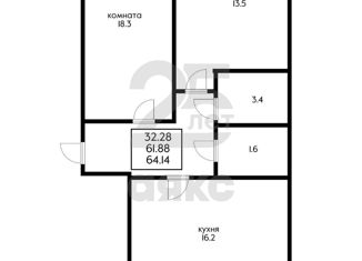Общая площадь: 64.14 м2