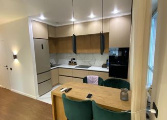 Продается 2-х комнатная квартира с выполненным ремонтом. Лучшая планировка в комплексе. Вся стоимость в договоре купли-продажи! БОЛЬШАЯ КУХНЯ-ГОСТИНАЯ . Кухонный гарнитур со встроенной техникой, кондиционер Haier. (Холодильник, духовка, микроволновая печь, кондиционер) Раздвижной стол и стулья с поворотным механизмом. Полы с подогревом и сенсорны... |