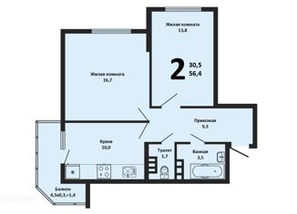 Общая площадь: 56.4 м2