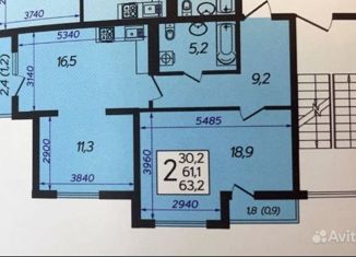 Продам двухкомнатную квартиру, 63.4 м2