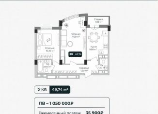 Общая площадь: 49.7 м2