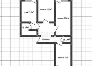 Трехкомнатная квартира на продажу, 107.7 м2, улица Леваневского, 187