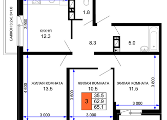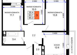 Продажа 3-ком. квартиры, 65.3 м2