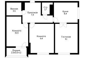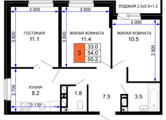 Общая площадь: 55.2 м2