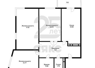 Продается 3-ком. квартира, 94.5 м2, Уральская улица, 71