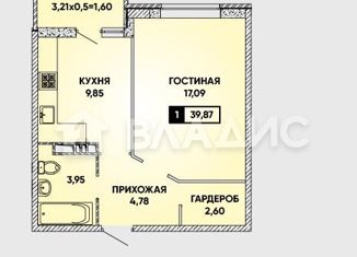 Однокомнатная квартира на продажу, 39.2 м2, улица имени Героя Николая Шевелёва, 5