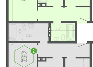 2-ком. квартира на продажу, 56.9 м2, улица имени 40-летия Победы, 97/2