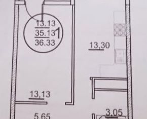 Общая площадь: 35.31 м2