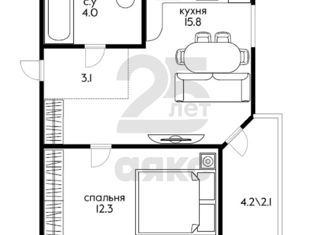 Жилая: 12.3 м2