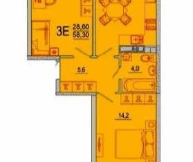 Общая площадь: 58.3 м2