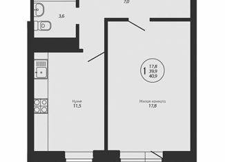 Продается однокомнатная квартира, 39.7 м2, улица Гидростроителей, 59/2лит1