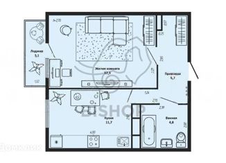 Общая площадь: 43 м2