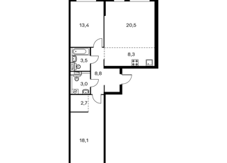 Продам 2-ком. квартиру, 66.6 м2, Московская улица, 57/1
