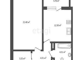 1-ком. квартира на продажу, 43.3 м2, Береговая улица, 2к1