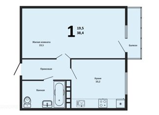 Общая площадь: 38.4 м2