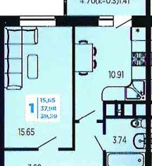 Общая площадь: 37.6 м2