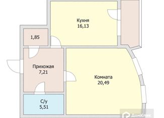 1-комнатная квартира на продажу, 54 м2, Постовая улица, 23