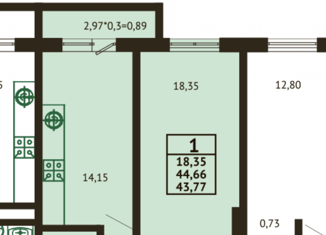 Однокомнатная квартира на продажу, 44.6 м2