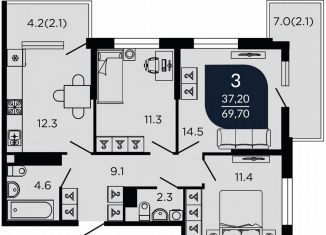 Общая площадь: 69.5 м2