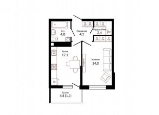 Продаю 1-ком. квартиру, 41.2 м2, Конгрессная улица, 43