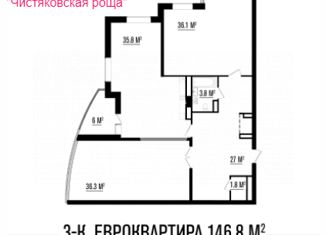 О КВАРТИРЕ: Продаётся евро 3-комнатная квартира. Общая площадь 146,5 м2. В квартире просторная кухня-гостинная - 36 м2 и две изолированные комнаты (35.7+36.1 м2). Шикарный балкон с панорамным остеклением 6 м2. На балконе можно организовать отличное рабочее пространство (личный кабинет), либо лаунж зону с отличным видом на Чистяковскую Рощу. Квартир... |