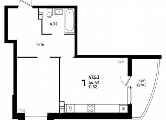 Однокомнатная квартира на продажу, 47.5 м2