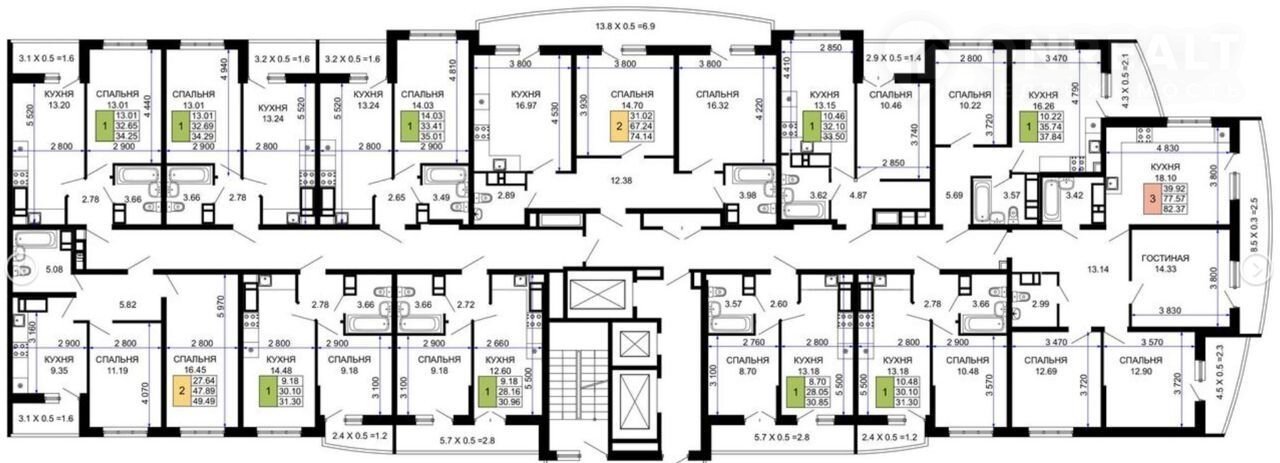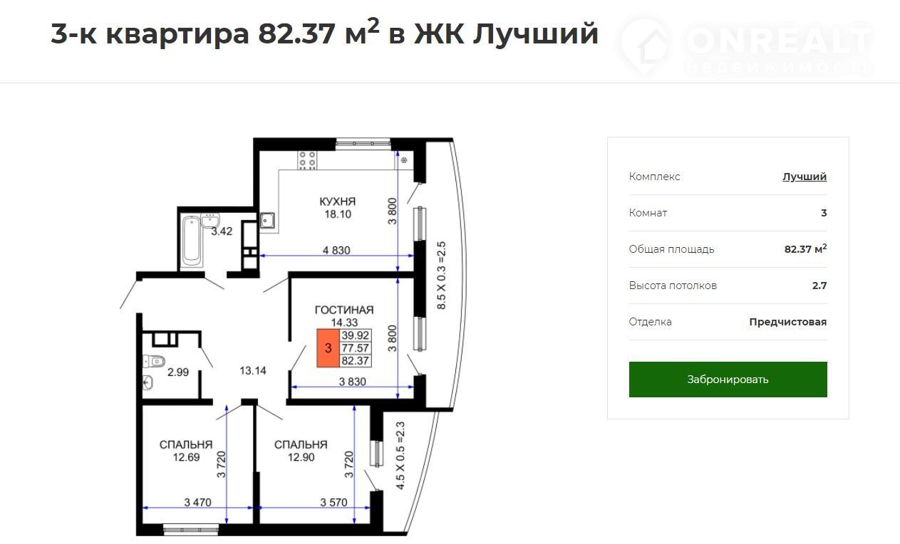 Общая площадь 82.4 м2