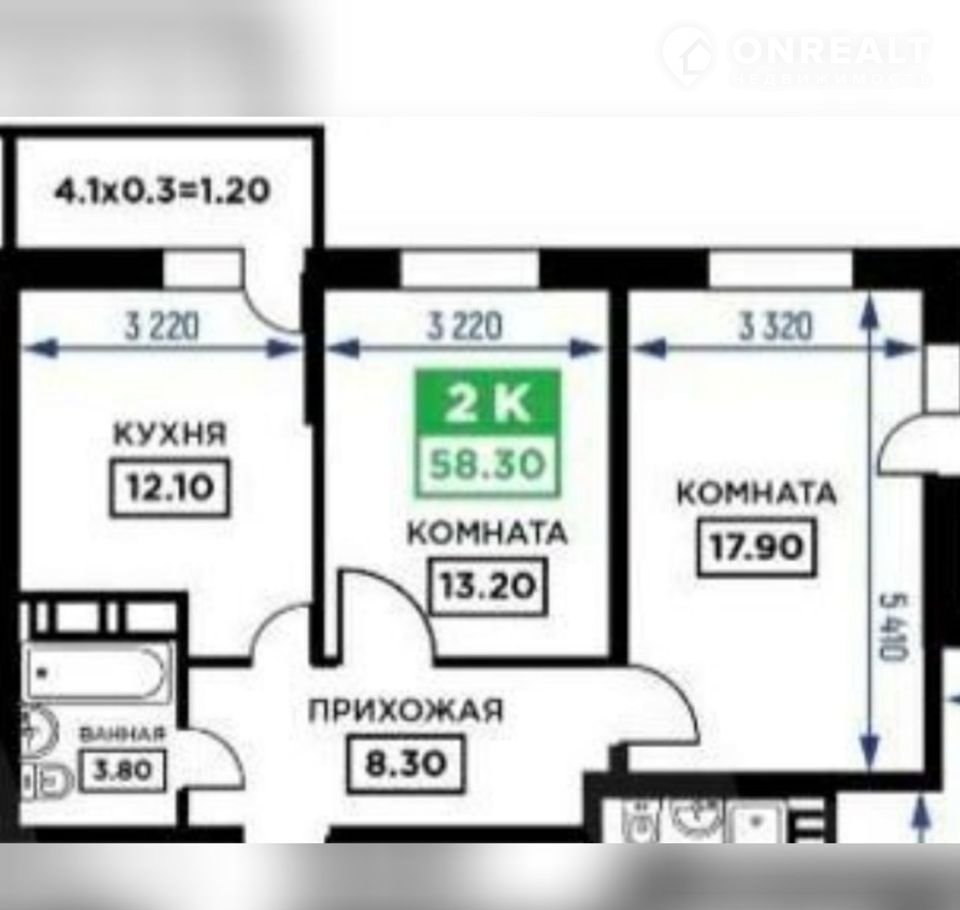 Общая площадь 58.3 м2