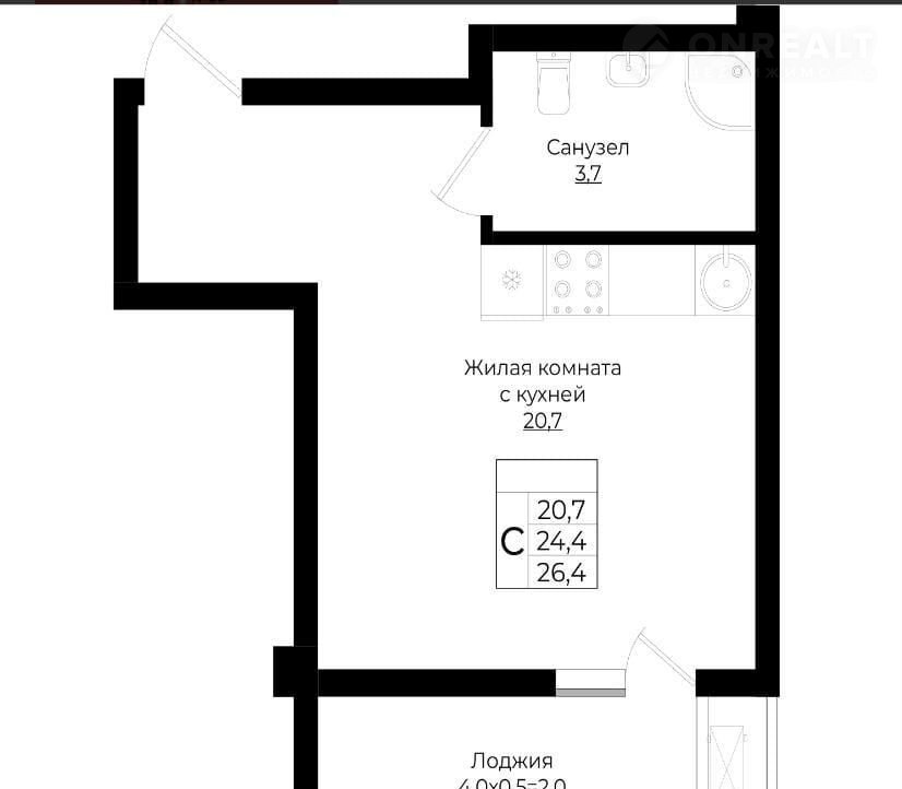 Общая площадь 26.4 м2