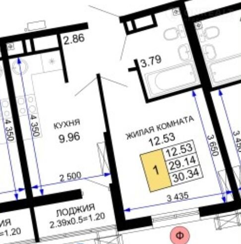 Общая площадь 30.3 м2