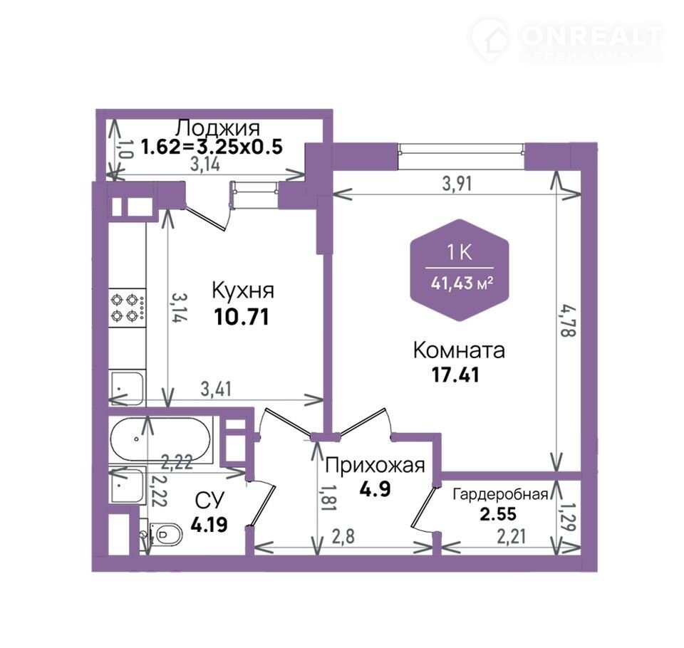 Общая площадь 41.4 м2