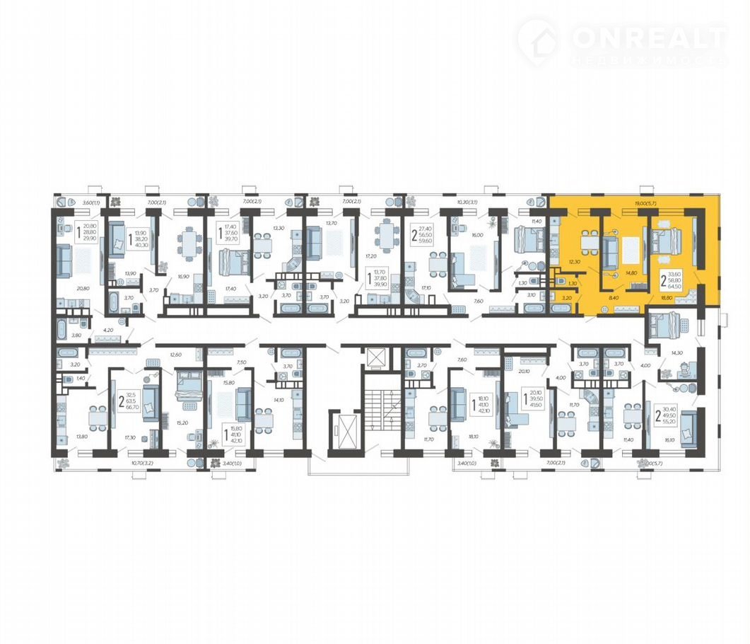 2-комнатная квартира, 64.5 м2, этаж 11 / 12, на продажу в Краснодаре, Ярославская улица, 115к3