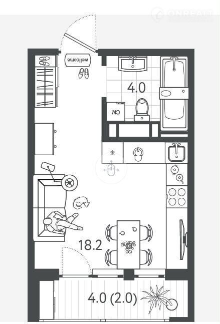 Балкон, лоджия 1 лоджия