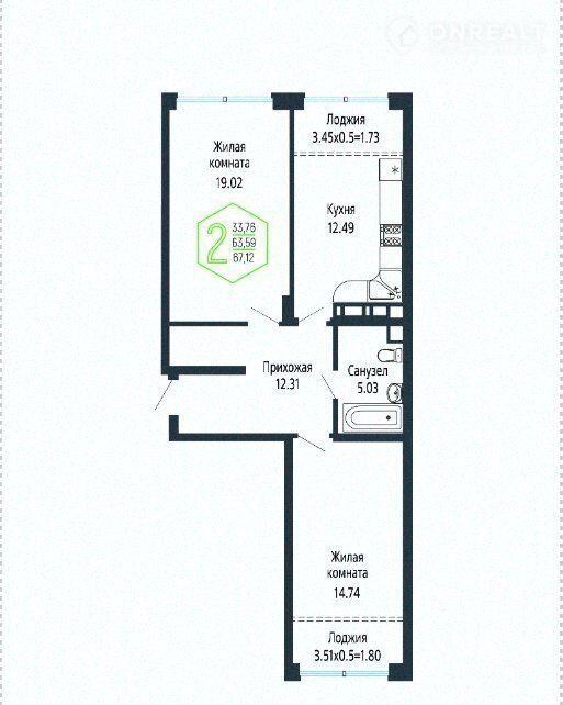 Общая площадь 67.1 м2